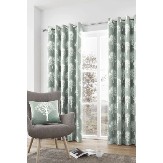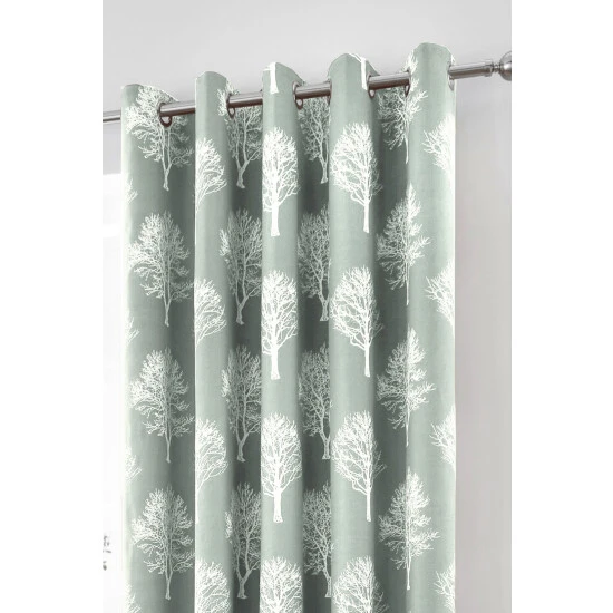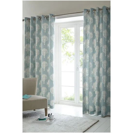 Fusion Duck Egg Blue Woodland Trees Jacquard Lined Eyelet Curtains