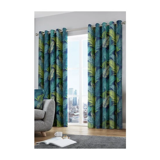 A dramatic, exotic palm leaf illustration utilises this seasons must have colours to striking effect for this matching warm tropical inspired curtains and cushions collection. Made with 100% cotton, the curtains are fully lined, ready to hang with eyelet headers. The cushions have a pom pom edge with a zip opening for ease of cleaning.