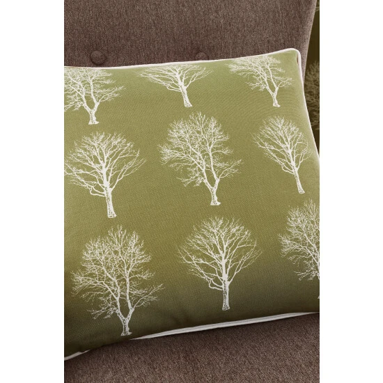 A beautifully drawn silhouette tree motif adds a touch of sophistication to this matching cushion and curtains set . They have an eyelet heading style that ensures the curtains are easy to hang and have a lovely drape. Produced on 100% cotton face fabric with a polycotton lining.