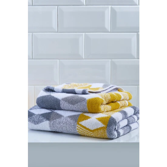 Who says bath towels can t be fashionable? Soft on the skin and fabulously absorbent, these luxury, 550gsm 100% cotton, geo jacquard towels are perfect for anyone who loves their bathroom to look anything other than plain.
