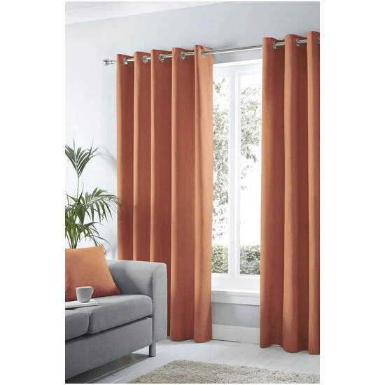 These terracotta spice coloured semi-plain curtains look sensational and will suit any room in the house. Made with 100% cotton, these curtains have an eyelet heading style that ensures the curtains are easy to hang and have a lovely drape & the soft lining helps to keep light out & heat in.