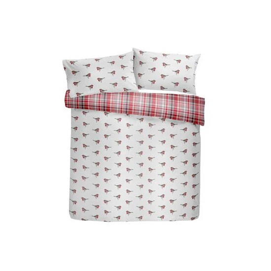 Created in super-soft 100% brushed cotton and featuring a contemporary winter robin design on the front side and a striking tartan check design in complementary colours to the reverse, this duvet set will make any bed wonderfully warm and inviting. Available with matching fitted sheets, this bedding is fun and versatile and will see you through the winter months in comfort and style.